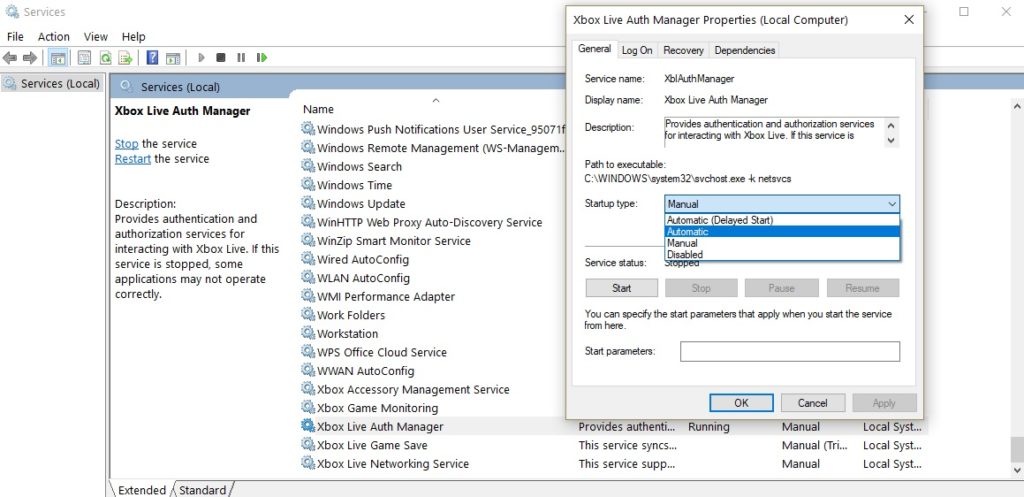 • Localize os serviços: xblauthmanager, xblgamesave e xboxnetapisvc