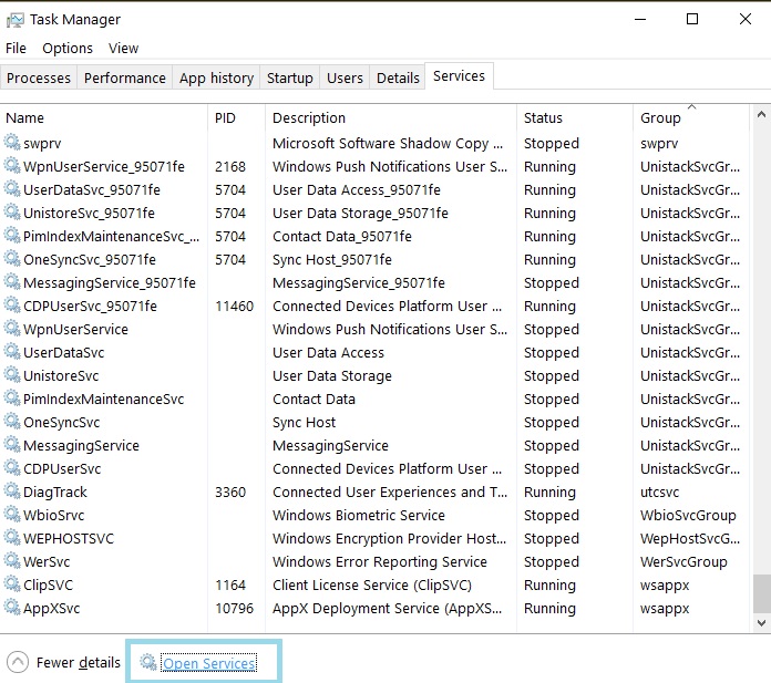 • Em seguida, vá para Serviços> clique no botão Abrir serviços