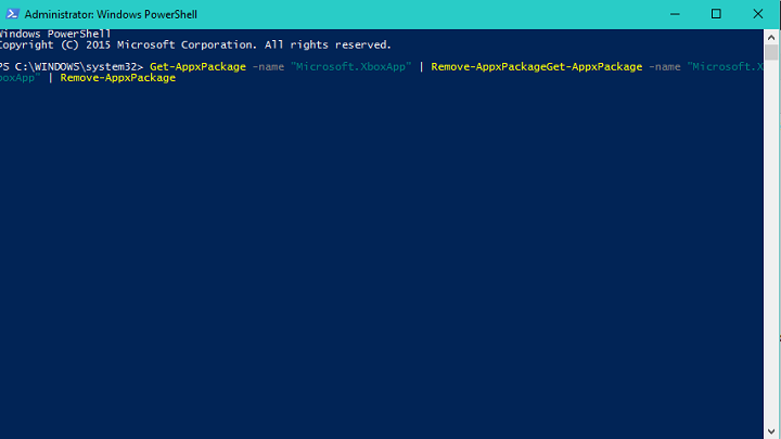 • Get-AppxPackage -name “Microsoft.XboxApp” | Remove-AppxPackage
