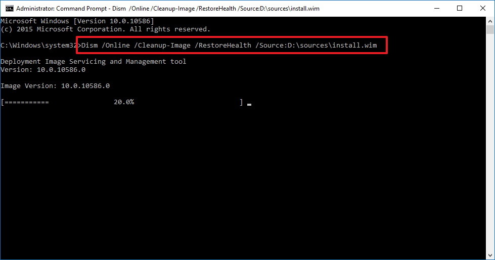 DISM /Online /Cleanup-Image /RestoreHealth /Source:repairSource\install.wim